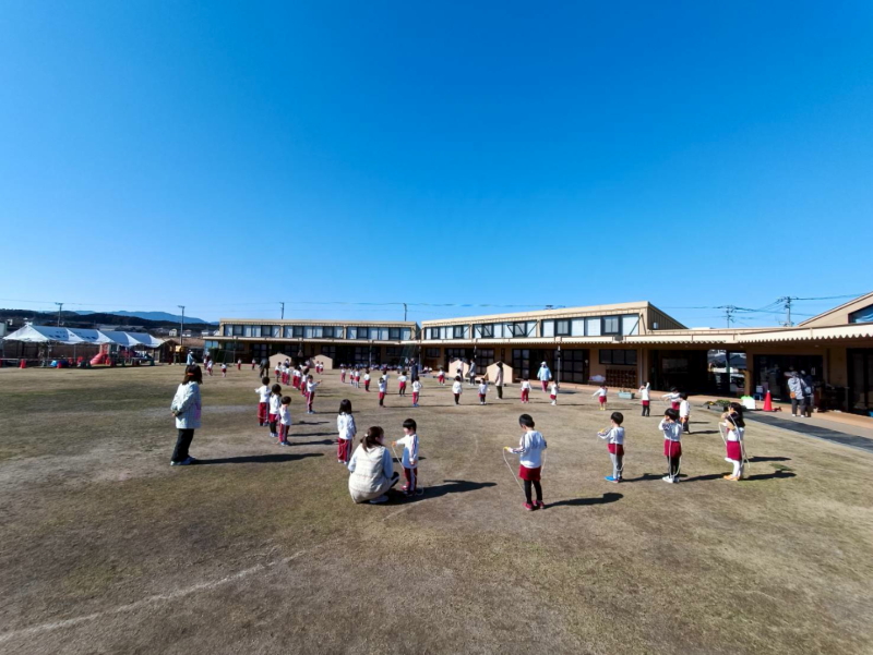 園庭でなわとび大会をおこないました。年少クラス、年中クラス、年長クラスそれぞれ分かれておこない、年長クラスは前とびのほかに後ろとびもおこないました。年少で1番の子は35秒、年中、年長の子は3分以上も跳び続けました。大人でも3分以上跳び続けるのは大変なのに、子どもたちの能力に驚かされます。なわとびを通じて、体力のある、根性のある子に成長していってほしいですね(^^)