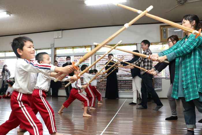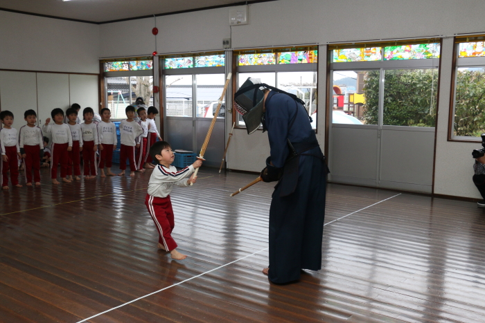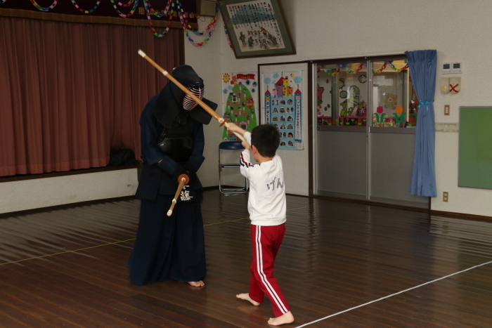 照れながらもしっかりと竹刀を打ち込む姿は、もうすっかりお兄さんです。