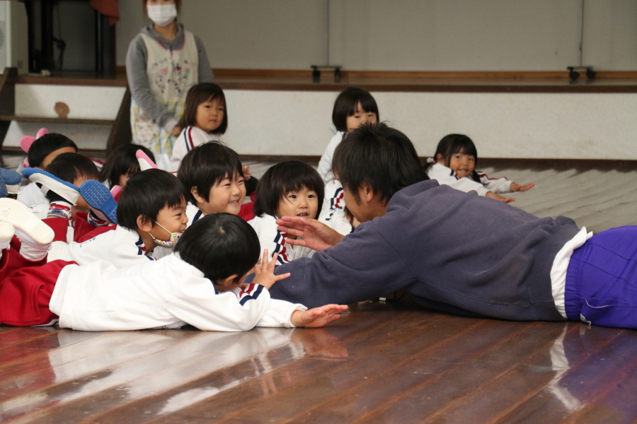 今日は「すみれ組さん」、「ひまわり組さん」が体操教室です。