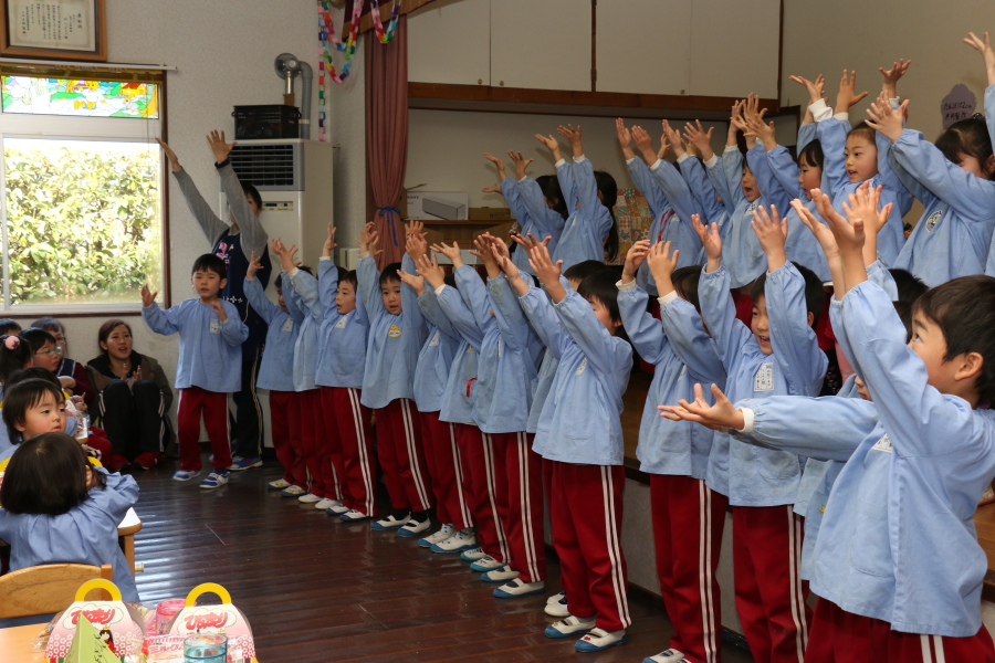 各クラスが手遊びとダンスを披露してくれます!その中で年中、年少児は年長のみんなへメッセージを、年長児は年少、年中のみんなにメッセージを送ります。